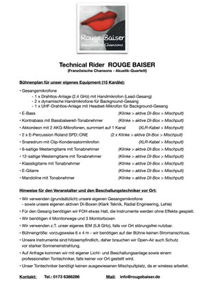 In unserem Technical Rider listen wir unser eigenes Equipment auf und geben weitere Hinweise für Veranstalter.